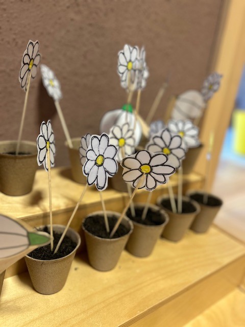 Wir gestalten im Atelier Schmetterlinge und Blumen, malen und werkeln, bekleben die Ostereier und verkürzen damit die Zeit bis der Osterhase kommt. Noch haben wir ihn aber nicht gefunden. Hast du ihn gesehen?