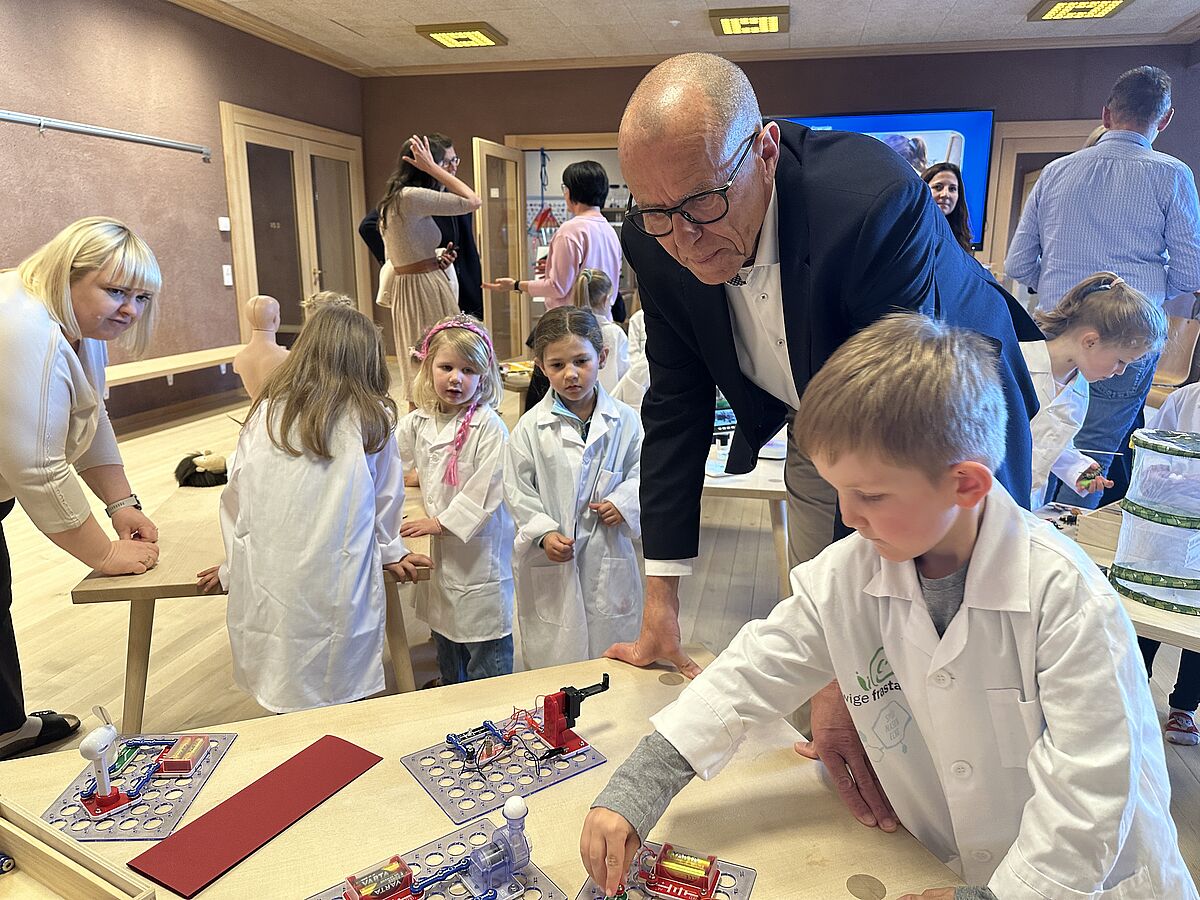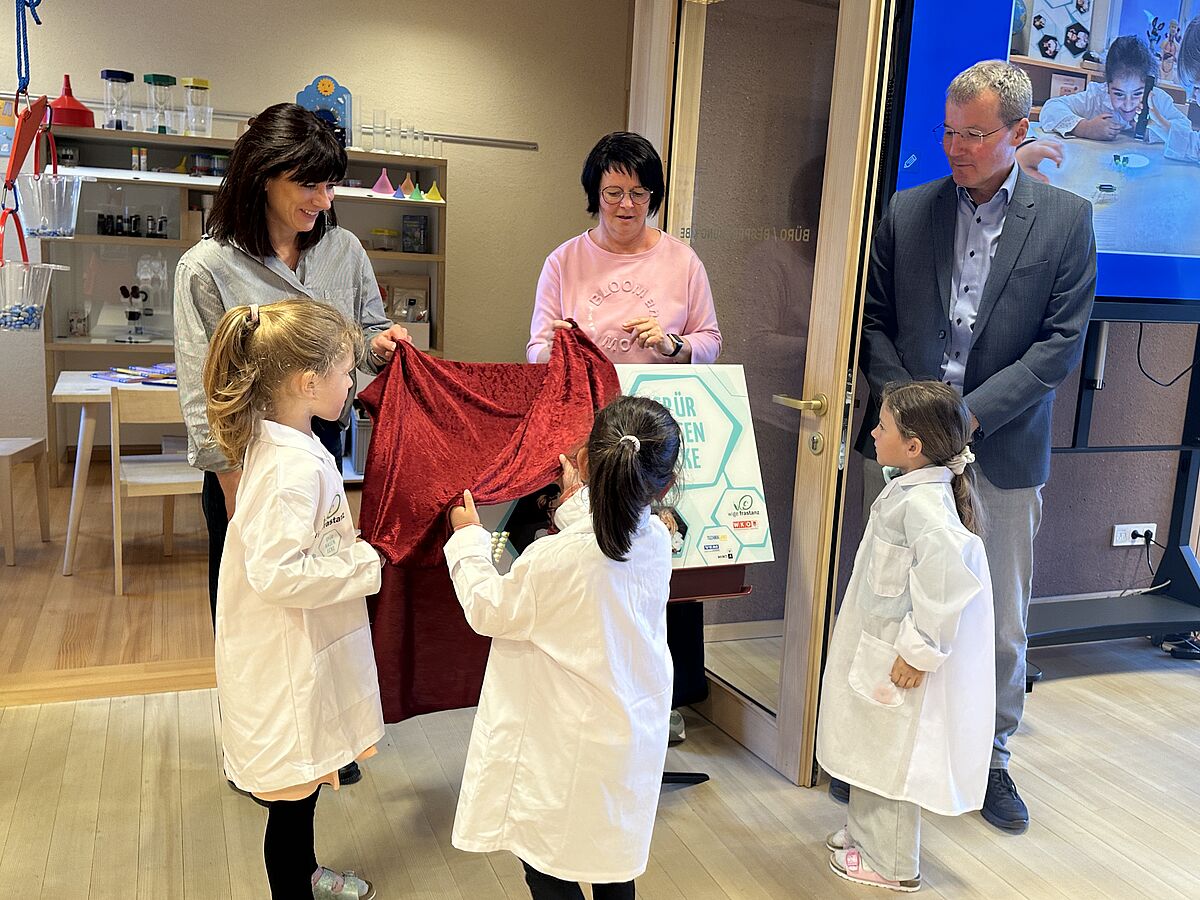 „Komm, wir gehen zu den Forschern, das macht Spaß…“ sangen die Kinder gemeinsam bei der Eröffnung der Spürnasenecke im Bildungszentrum Hofen. Der durch die WIGE Frastanz geförderte Lernraum lädt zum Entdecken, Experimentieren und Forschen ein und ist bereits fixer Bestandteil des pädagogischen Alltags zur Stärkung der frühkindlichen MINT-Bildung.